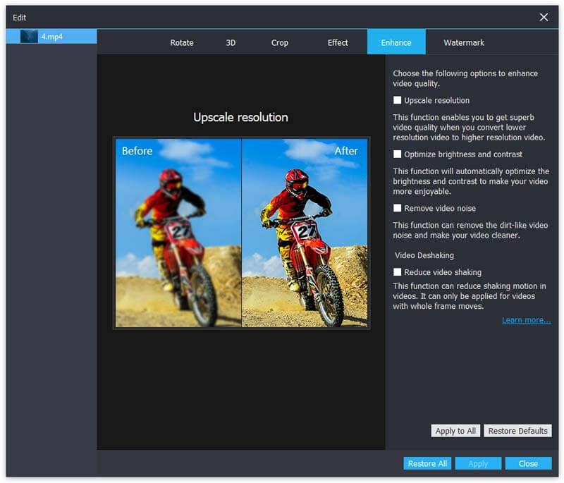 Video optimization software to fix low resolution video, upscale video to high resolution