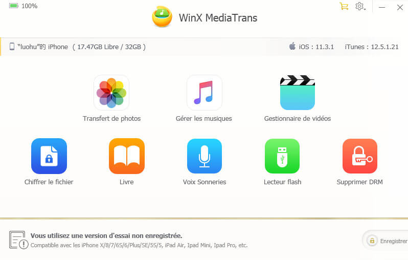 De nombreux utilisateurs iOS utilisent Tunes pour supprimer ou synchroniser les données iOS sur leur ordinateur. Pourtant, des pertes de données se produisent souvent et les fichiers perdus ne peuvent pas être restaurés, même si vous connectez votre appareil iOS à iTunes, ce qui agace de nombreux utilisateurs. WinX MediaTrans vous permet de synchroniser très facilement les données iOS entre iPhone/iPad et PC. Vous pouvez sauvegarder des données complètes en une seule fois ou sélectionner les fichiers dont vous avez besoin pour la sauvegarde. Vous n'avez pas besoin d'installer iTunes car Winx MediaTrans est plus fiable et plus pratique. Il peut escorter vos données sans vous soucier de la perte de fichiers.